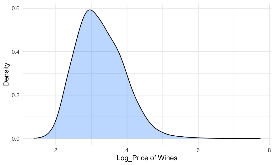 \[ log(Price) = \beta_1 + \beta_2X_{Points} + \beta_3X_{Variety} + \beta_4X_{Continent}\]